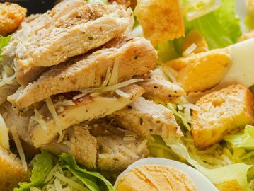 Lechuga, huevo cocido, crotones, queso parmesano y original aderezo césar