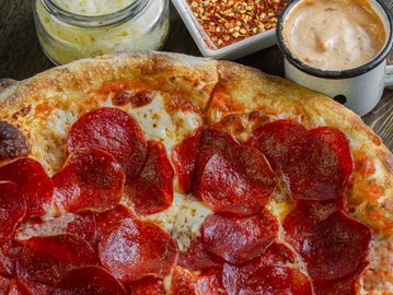 Clásica pizza con mucho pepperoni.